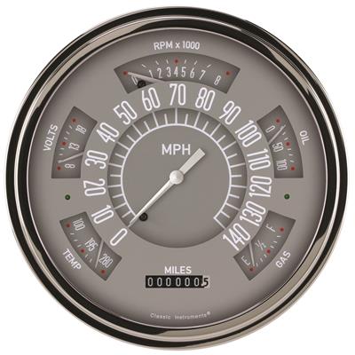The new Classic Instruments Six Pack gauge sets are some of the coolest and most innovative units on the market. With their variety of color options, you're sure to find one that suits your style and data needs. They feature speedometer, tachometer, fuel, temperature, volt, and oil gauges all within one universal fit dial. Installing the all-electronic cluster is quick and easy, utilizing a single harness connection in the back with Classic Instruments' Zeus speedometer technology for push-button calibration and all the included sending units.